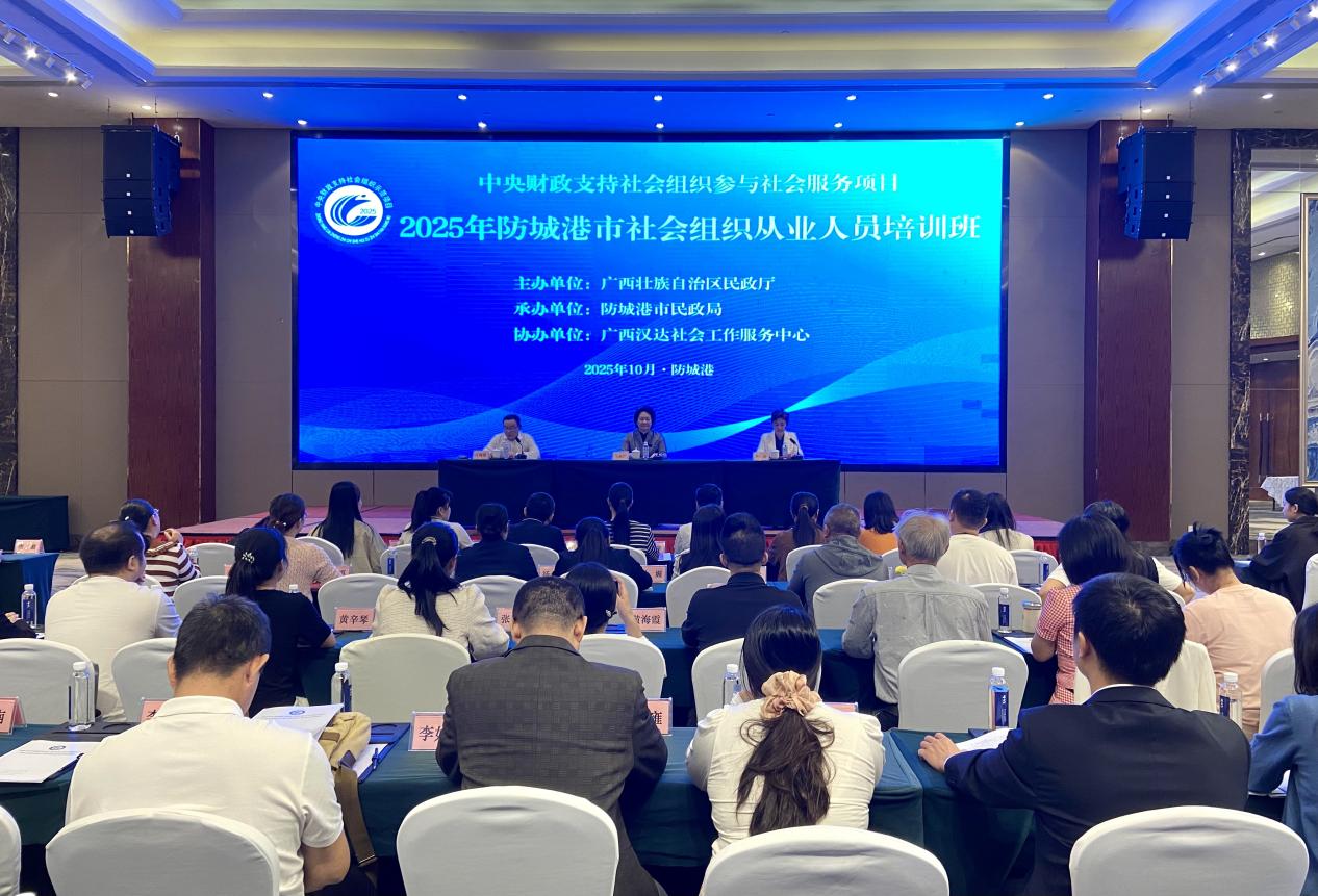 10月27日至29日,由自治区民政厅主办、防城港市民政局承办、广西汉达社会工作服务中心协办的中央财政支持社会组织参与社会服务项目——社会组织从业人员培训班在防城港市举办。自治区民政厅党组成员、副厅长王祝广出席开班式并讲话。