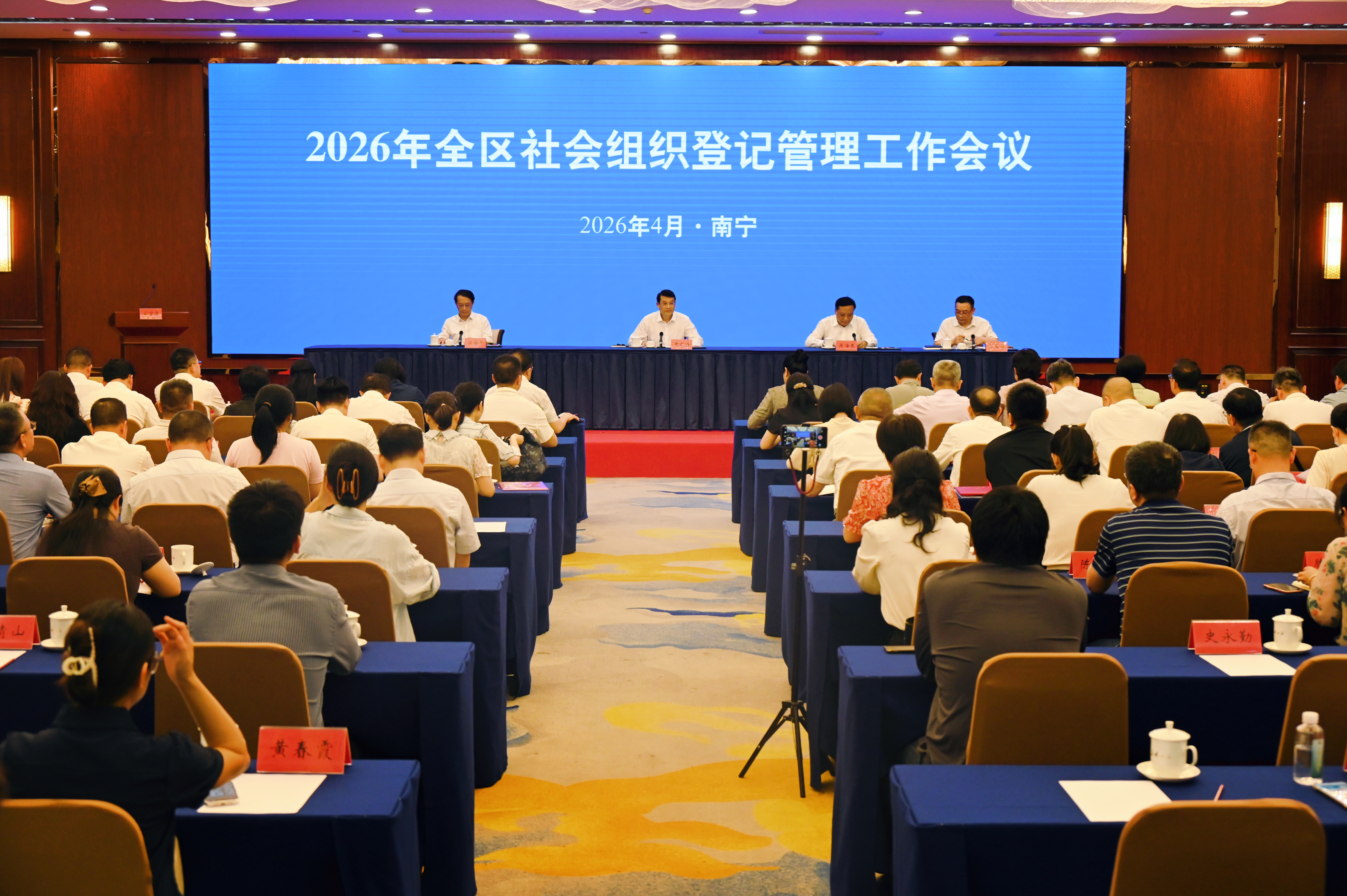 4月14日,自治区民政厅召开2026年全区社会组织登记管理工作会议,总结2025年工作,部署2026年任务,推动全区社会组织高质量发展,助力“暖心民政”三年行动走深走实。自治区民政厅党组书记、厅长黄武海出席会议并讲话,自治区民政厅党组成员、副厅长蒋海东主持会议。