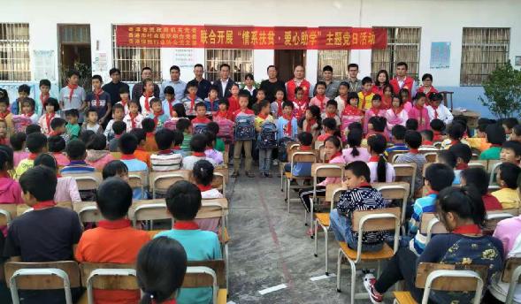 为改善农村学校设施条件,关心关爱贫困家庭学生,促进贫困村教育教学工作,进一步强化党员党性意识和服务意识,推动党建工作扎实开展,2018年11月13日下午,贵港市民政局机关党委、贵港市社会组织综合党委、贵港保险行业协会党支部到社步镇宁江小学联合开展“情系扶贫·爱心助学”主题党日活动。