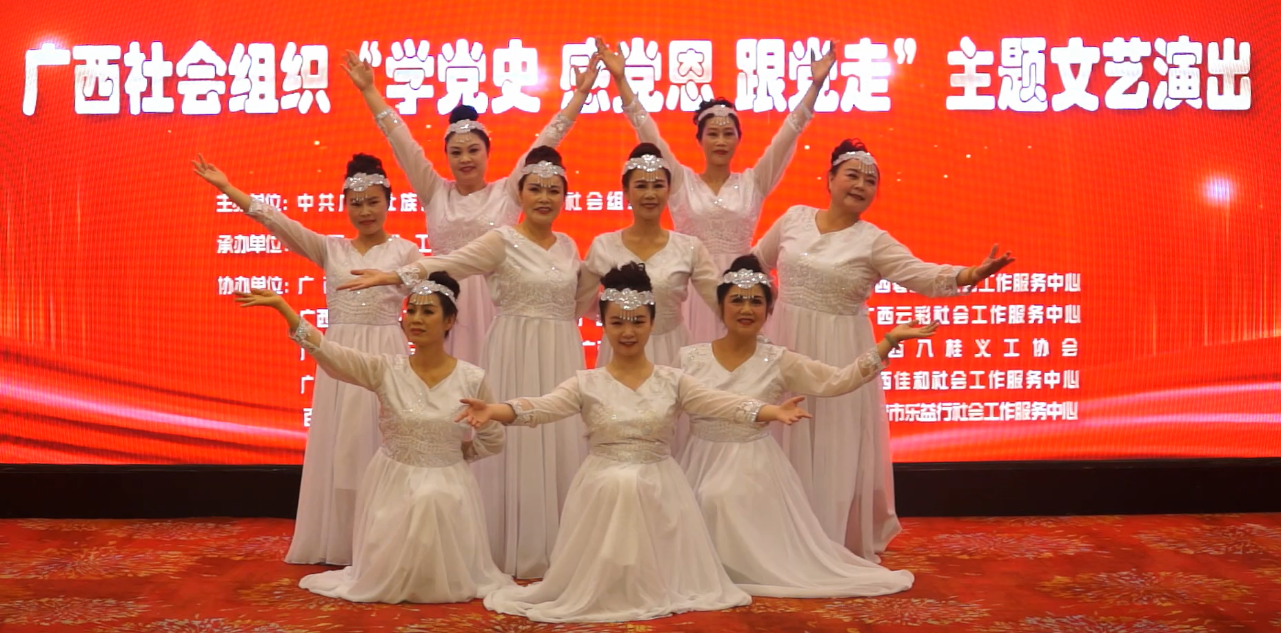 广西零距离社会工作服务中心党支部的舞蹈《不忘初心》