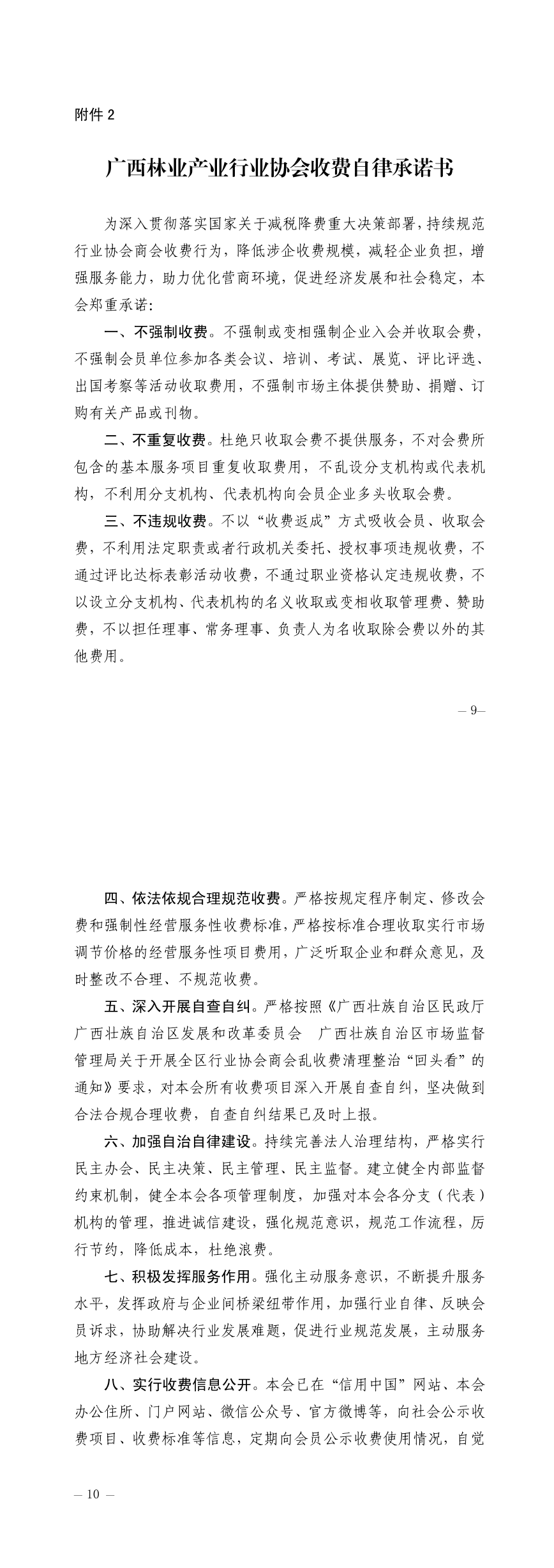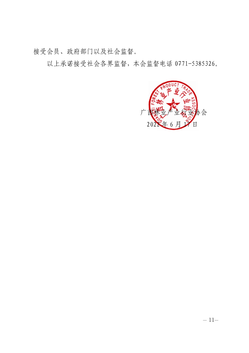 广西林业产业行业协会收费自律承诺书