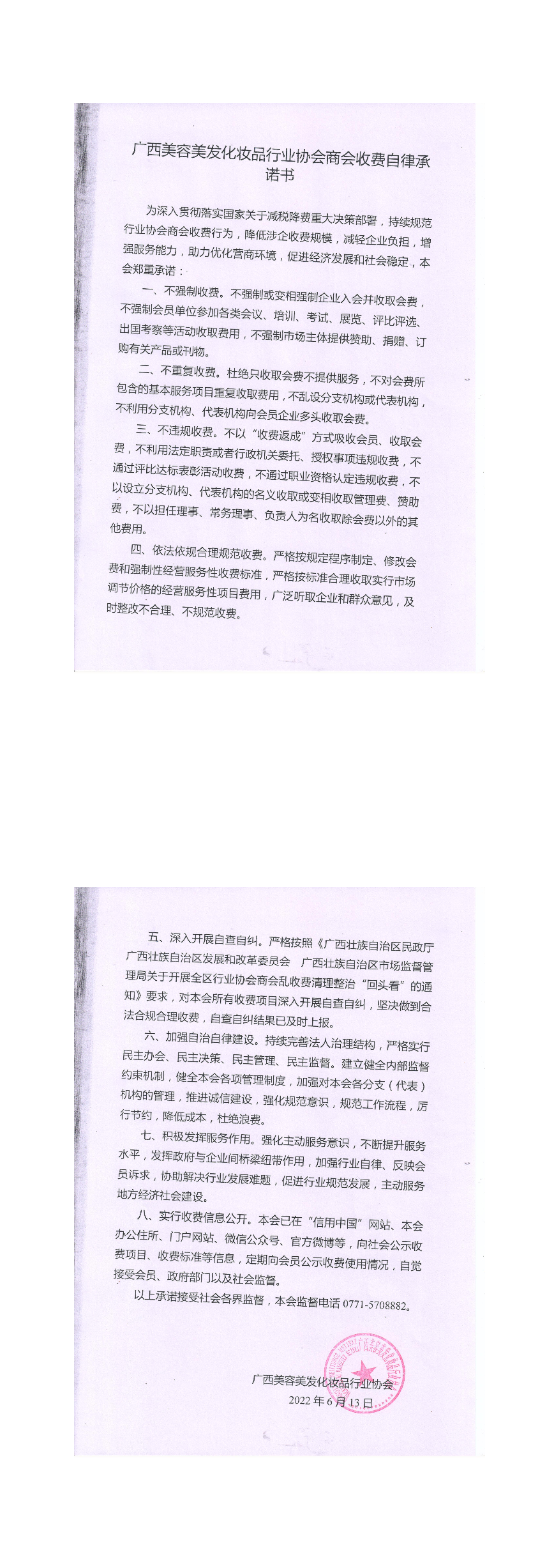 广西美容美发化妆品行业协会承诺书