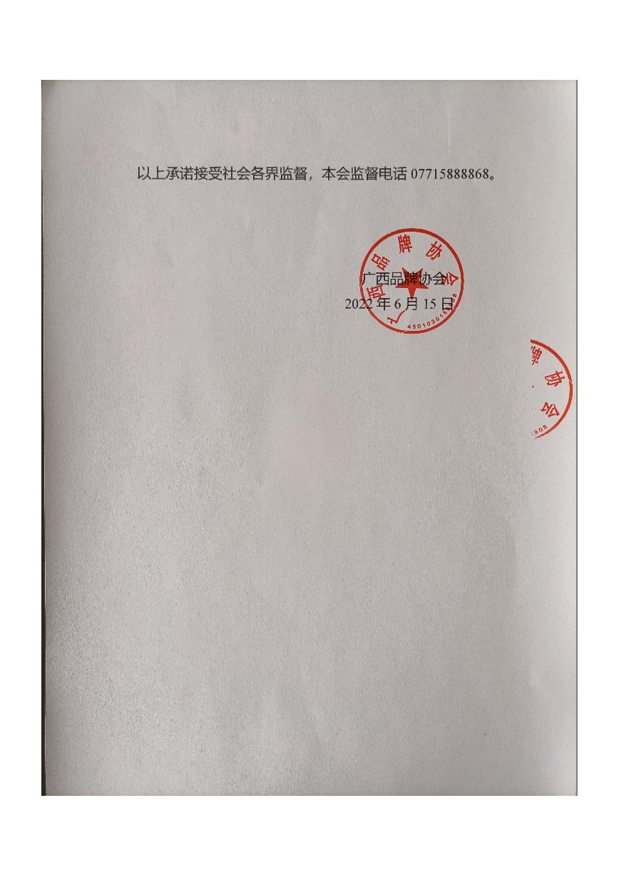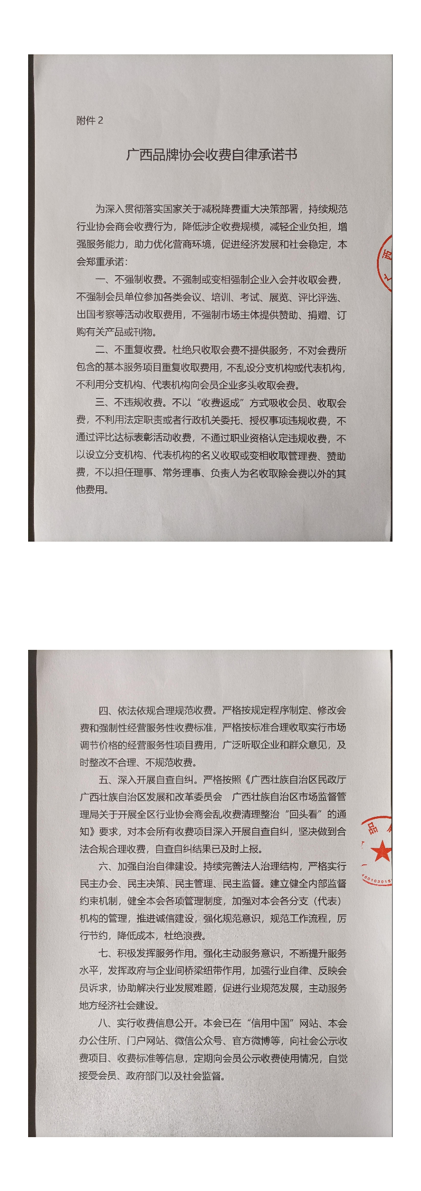 广西品牌协会收费自律承诺书
