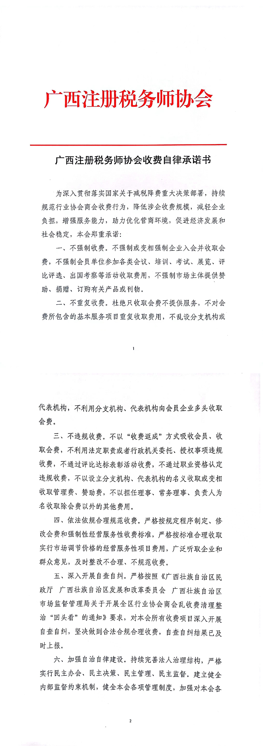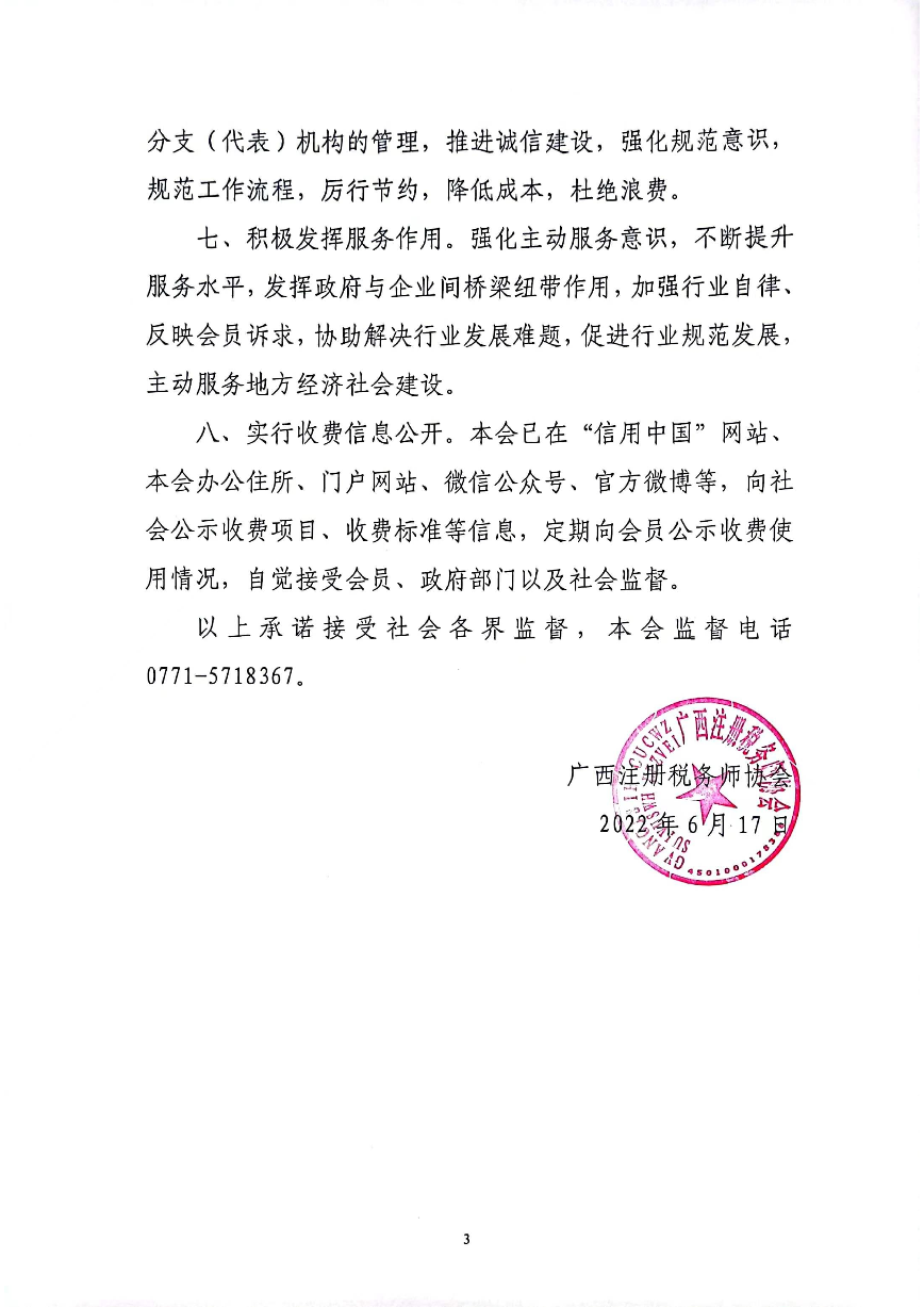 广西注册税务师协会收费自律承诺书