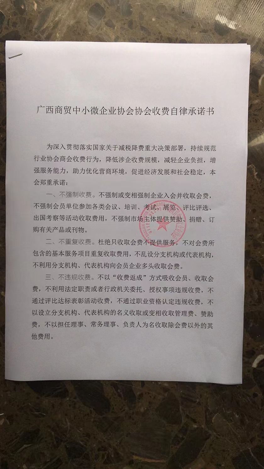 广西商贸中小微企业协会收费自律承诺书